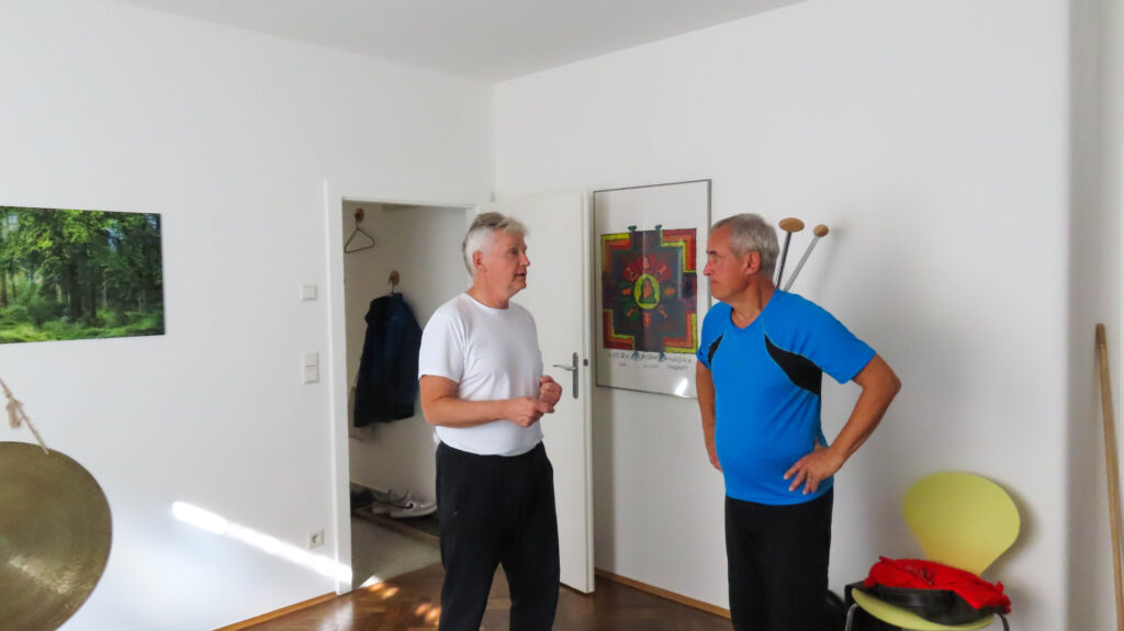 Anschließend legen Sie sich bequem auf die Matte am Boden, und ich nehme mir Zeit, durch sanftes Tasten, Fühlen und Beobachten Ihren aktuellen körperlichen Zustand wahrzunehmen.